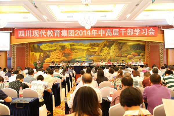 德陽市千山街三段87號火紅的八月,匯集著火的色彩;深情厚意的八月,抒寫著所有集團(tuán)人的情懷。8月17日-8月19日,四川現(xiàn)代教育集團(tuán)2014年中高層干部學(xué)習(xí)會在集團(tuán)新落成的蜀徽大酒店中華廳內(nèi)隆重舉行,裝飾一新的蜀徽大酒店中華廳內(nèi),華燈溢彩,氣氛熱烈。德陽外國語學(xué)校、中江職中、中江繼光實驗學(xué)校、黃許職中、西昌現(xiàn)代職校、會理現(xiàn)代職校、涼山職業(yè)技術(shù)學(xué)院(籌)、成都兩中心、蜀徽大酒店等集團(tuán)下屬十余個學(xué)校和單位的中高層以上管理人員和優(yōu)秀教師代表,以及集團(tuán)機關(guān)全體工作人員近300人參加了會議。