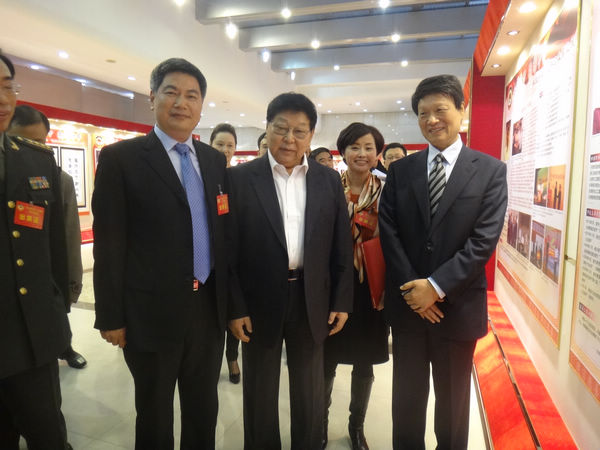 全國政協(xié)副主席鄭萬通與全國政協(xié)副主席陳宗興來到蘇華理事長的展板前,仔細(xì)閱讀展板內(nèi)容,并與蘇華理事長親切合影