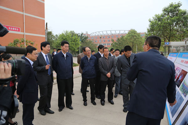 李向志率隊(duì)視察了中江職中的禁毒展覽室和各類依法治校展板,聽取了蘇華關(guān)于四川現(xiàn)代教育集團(tuán)和中江職中近年來依法治校工作的情況介紹。李向志對四川現(xiàn)代教育集團(tuán)和中江職中近年來在依法治校方面所取得的成績給予了高度評(píng)價(jià)。李向志指出,學(xué)校將普法教育、依法治校與日常管理相結(jié)合,大力開展品德教育、禁毒教育和平安校園建設(shè),增強(qiáng)了師生的法治意識(shí),成為民辦職教的一個(gè)先進(jìn)典型,值得肯定。李向志在視察中說:“今天我們進(jìn)縣、進(jìn)村現(xiàn)在又進(jìn)校,中江職中是一所民辦公助的新體制學(xué)校,作為一所中職學(xué)校,學(xué)校結(jié)合立德樹人的育人宗旨,在包括依法治校、踐行社會(huì)主義核心價(jià)值體系等方面做了大量的工作。學(xué)校作為全國民辦職業(yè)學(xué)校改革試點(diǎn)的一個(gè)先進(jìn)單位,實(shí)現(xiàn)零吸毒、零犯罪等多個(gè)目標(biāo),校園治安秩序良好,在禁毒方面也收到了良好的效果,受到了公安部的表彰?!?