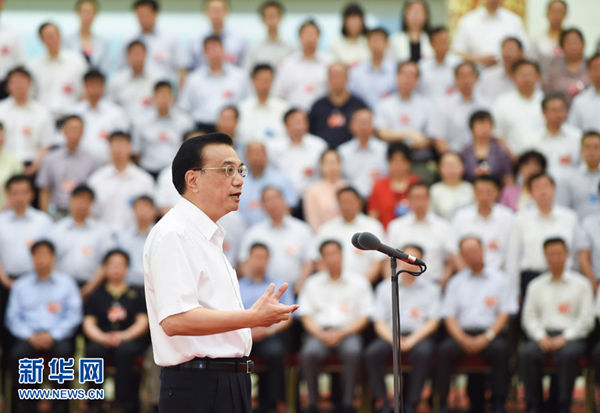 中共中央政治局常委、國(guó)務(wù)院總理李克強(qiáng)在會(huì)前親切接見與會(huì)全體代表并作重要講話。(圖片來源:新華社)