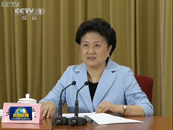 中共中央政治局委員、國(guó)務(wù)院副總理馬凱在會(huì)上作重要講話。(圖片來源:央視新聞)