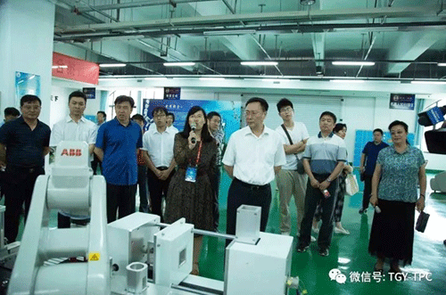 王繼平一行觀看了唐工院《建設國家優(yōu)質(zhì)高職院校,服務京津冀協(xié)同發(fā)展國家戰(zhàn)略》的專題匯報片,考察了唐工院校企共建企業(yè)——曹妃甸合心機器人系統(tǒng)集成有限公司和拓又達科技集團、與中車唐山機車車輛有限公司共建的動車組技術(shù)實訓區(qū)、液壓有源檢測項目、省級院士工作站——快速制造技術(shù)中心,與在唐工院學習交流的愛爾蘭都柏林理工學院留學生納賽爾·莫杰塔巴進行交談并詢問了唐工院與愛爾蘭合作項目情況。調(diào)研中,田秀萍、馬良軍介紹了唐工院的辦學、實訓、校企合作、集團化辦學和人才培養(yǎng)等基本情況。