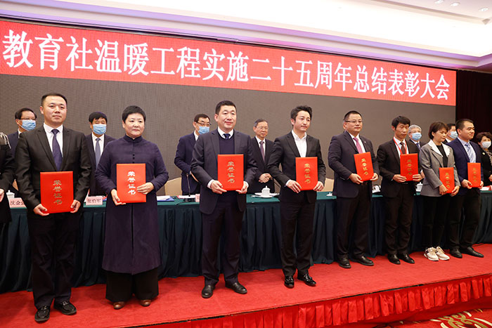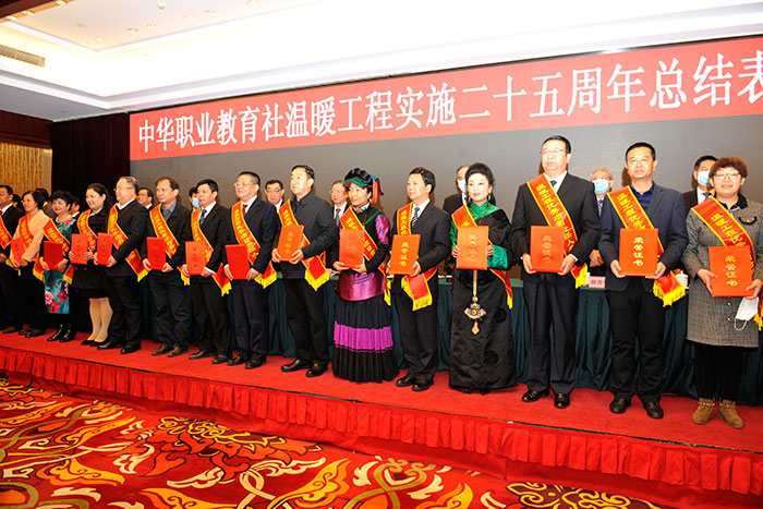 大會期間,中華職業(yè)教育社對溫暖工程實施二十五周年的先進集體和先進個人進行了表彰。經逐級推薦、審核評選、網上公示等程序,李兆基基金有限公司等5個單位榮獲溫暖工程最佳公益伙伴獎,天津中德應用技術大學等15個單位榮獲溫暖工程優(yōu)秀組織管理獎,王偉等20人榮獲溫暖工程優(yōu)秀項目責任人獎,毛錦鵬等20人榮獲溫暖工程奮斗之星獎,杭州市中華職業(yè)教育社等2個單位榮獲溫暖工程項目創(chuàng)新獎。會上,中華同心溫暖工程基金會接受了熱心公益事業(yè)企業(yè)的捐贈,并向溫暖工程公益大使陳金全、鄒市明、冉瑩穎等頒發(fā)了榮譽證書。