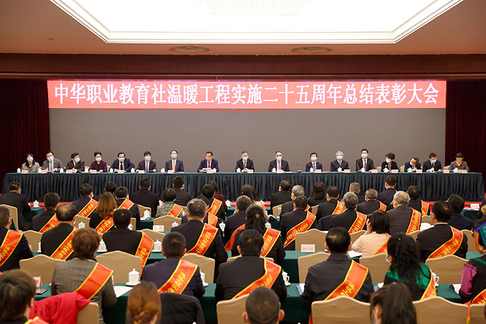 11月30日,中華職業(yè)教育社溫暖工程實施二十五周年總結表彰大會在京舉行。全國人大常委會副委員長、中華職業(yè)教育社理事長郝明金出席會議并講話,全國政協(xié)副主席、中華職業(yè)教育社副理事長辜勝阻宣讀表彰決定,中央統(tǒng)戰(zhàn)部副部長鄒曉東出席會議并講話。會議由第十二屆全國政協(xié)副主席、中華同心溫暖工程基金會理事長馬培華主持。